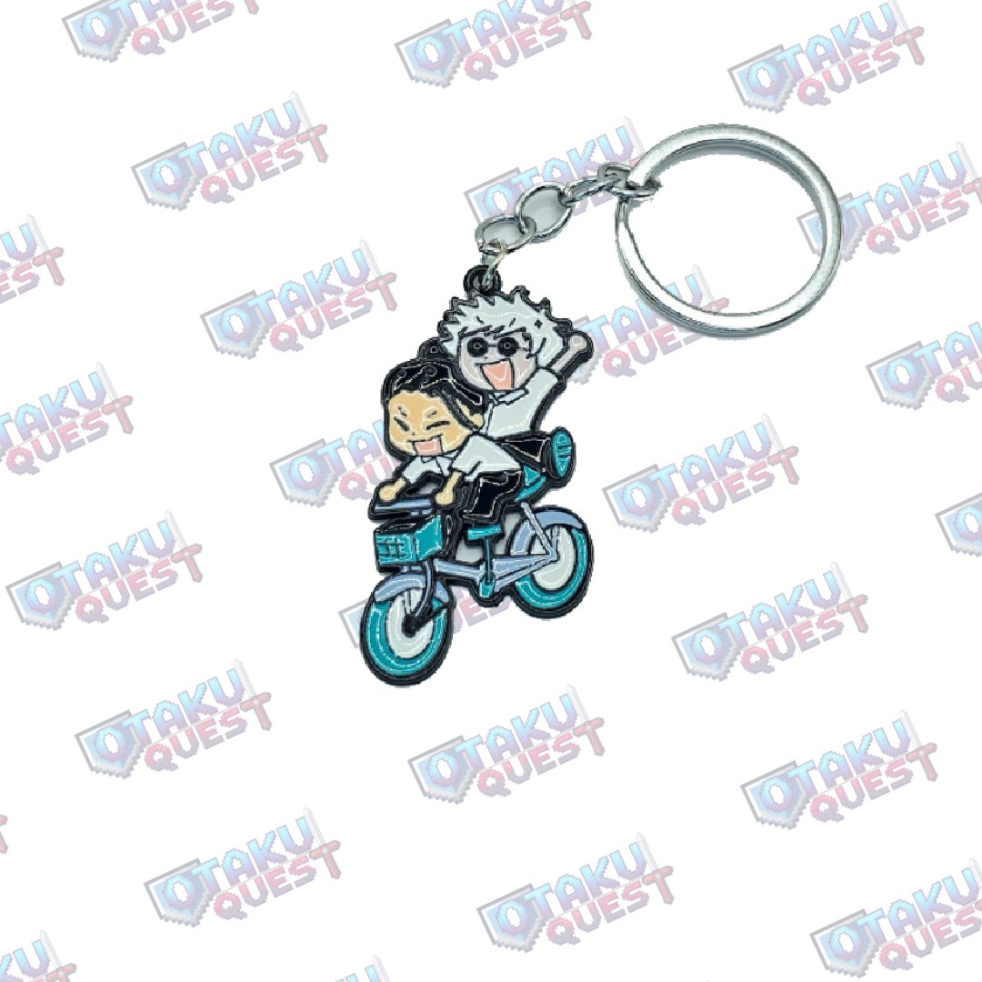 Bring some Jujutsu Kaisen humor wherever you go with this adorable Gojo and Geto on a bicycle keychain! Featuring a chibi-style design of the iconic duo enjoying a fun ride, this keychain perfectly captures their playful friendship and charm.